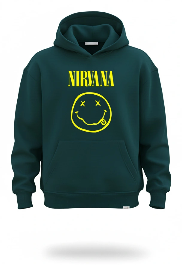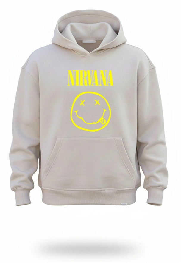این هودی با الهام از لوگوی کلاسیک بند Nirvana ساخته شده و طرح Smiley نمادین آن، حس نوستالژی و سبک موسیقی دهه ۹۰ را به استایل شما منتقل میکند ✨